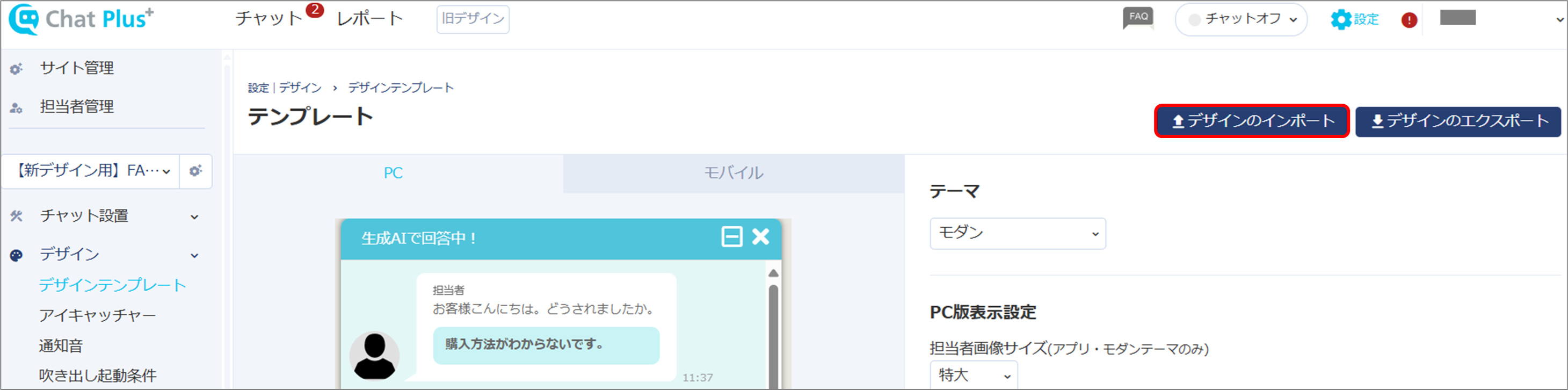 訪問者に表示される、チャットのカラーパターンをインポートする手順です。