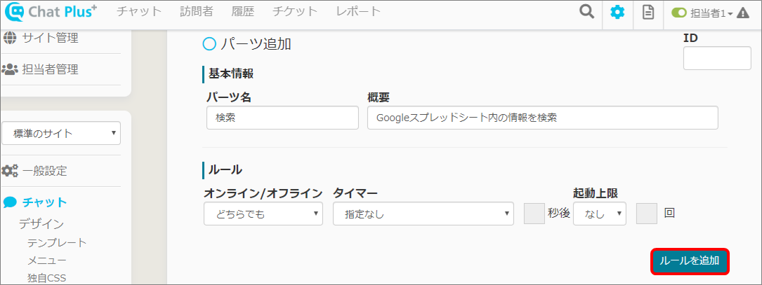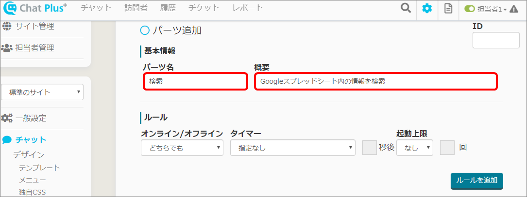 ※画面右上のIDの欄は空欄で構いません。チャットボットプラス作成時に自動でIDが割り振られます。