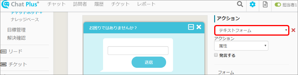 (7)アクションのプルダウンから「テキストフォーム」をクリックして選択します。