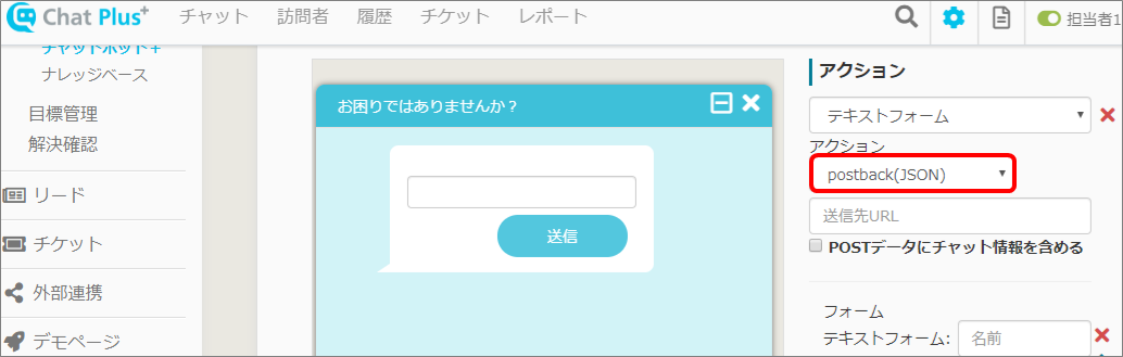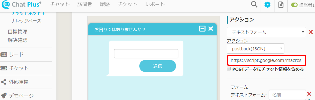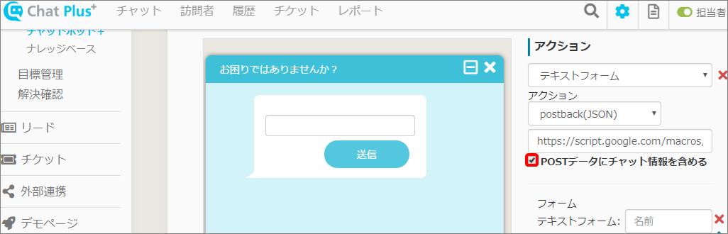 ※チェックを入れると、POSTデータにチャット情報を含めます。