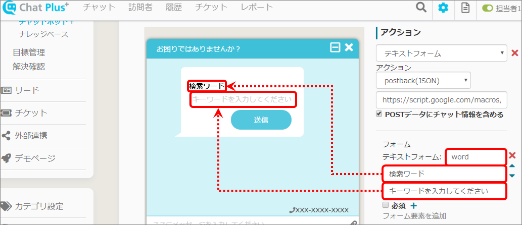 このページでは、Googleスプレッドシートに保有している会社名、担当者、電話番号、メールアドレスのリストに、チャットプラスからキーワードを送信し、該当するワードを含む会社情報を返答する手順をご案内します。