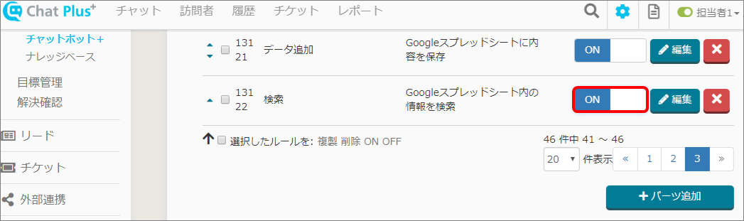 (12) チャットボット+一覧から、設定したルールを「ON」にします。