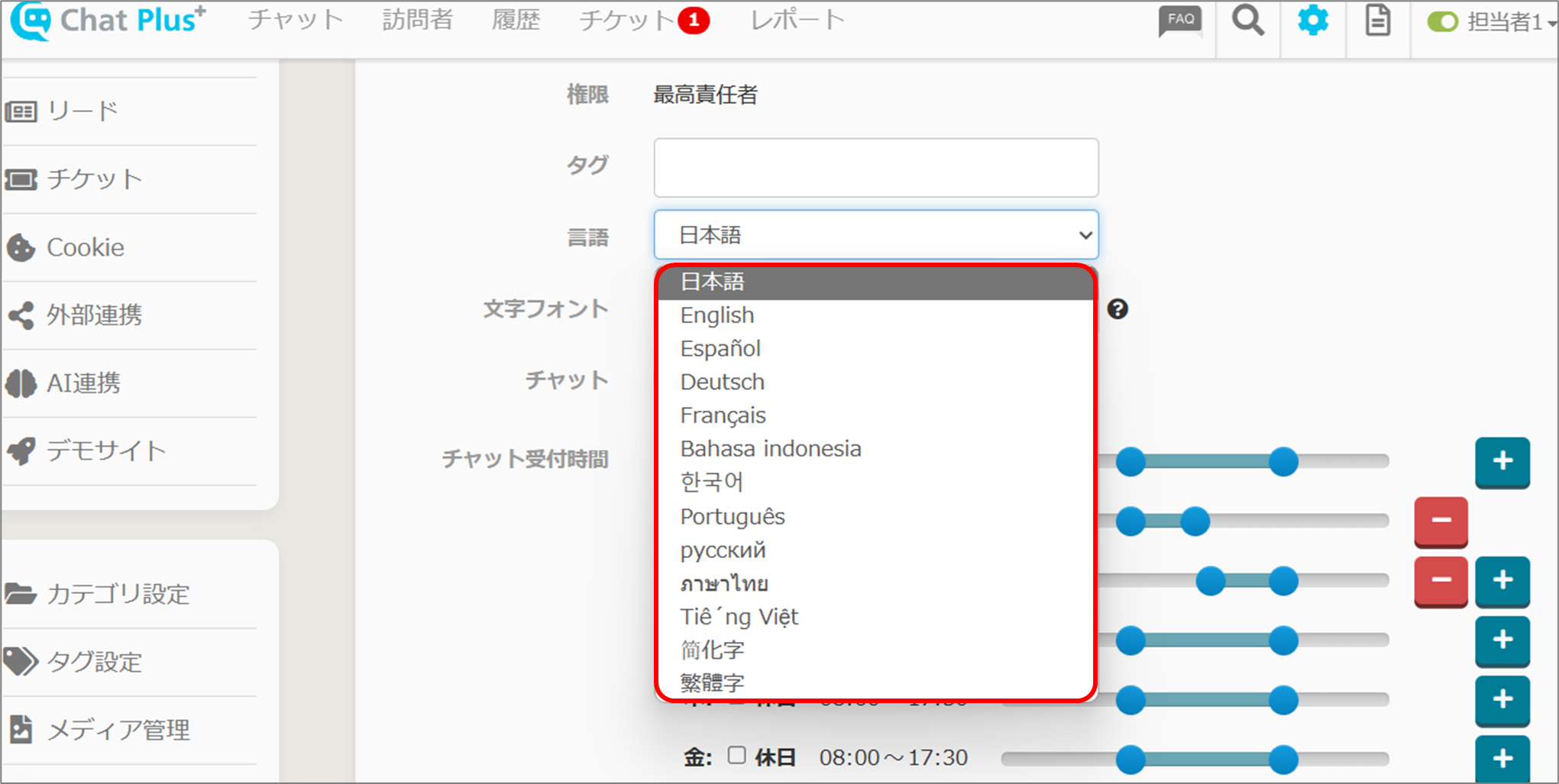 ChatPlusでは管理画面上で表示される言語を多言語に変更できます。