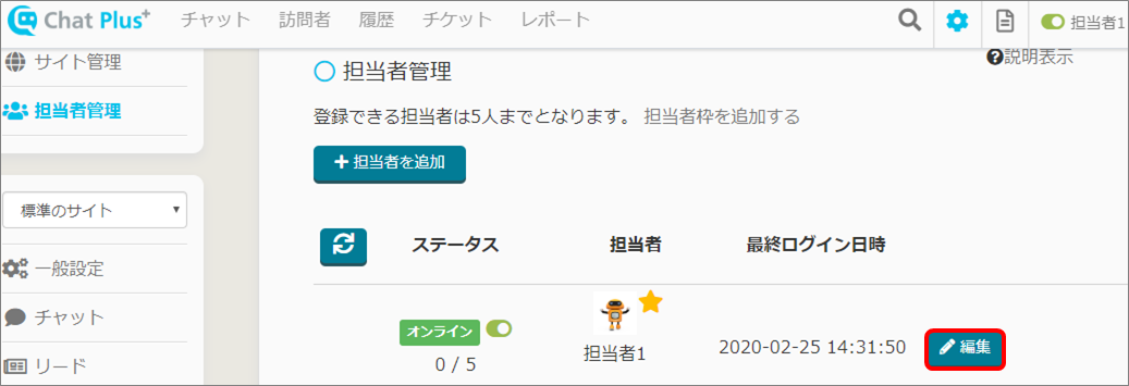 (3) 設定したい担当者右側の「編集」ボタンをクリックします。