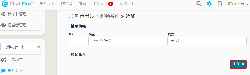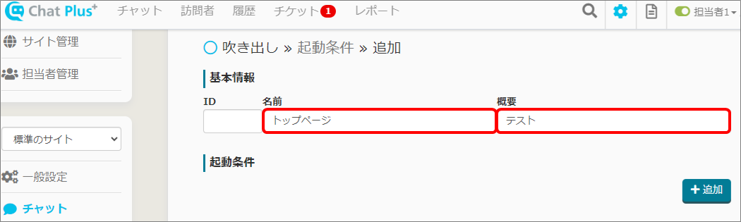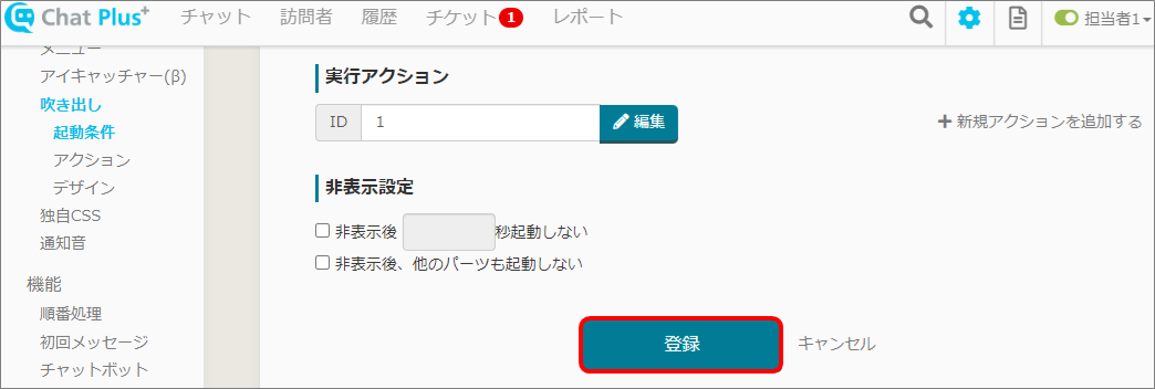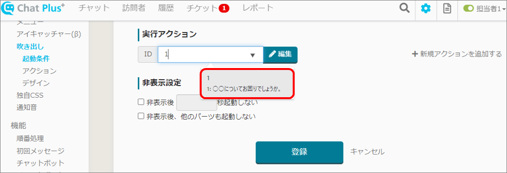 チャットプラスでは、起動条件ごとに、チャットボットに指定メッセージの吹き出しを表示させることができます。