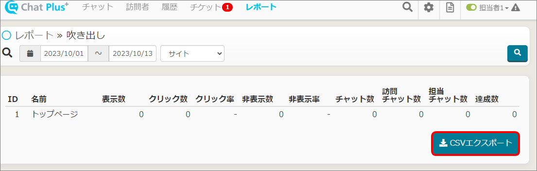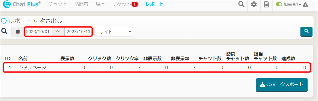(3) 期間を設定して、吹き出しの表示数やクリック数等を確認できます。