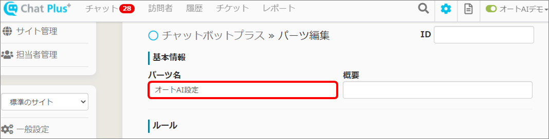 ※画面右上の ID の欄は空欄で構いません。チャットボットプラス作成時に自動で ID が割り振られます。