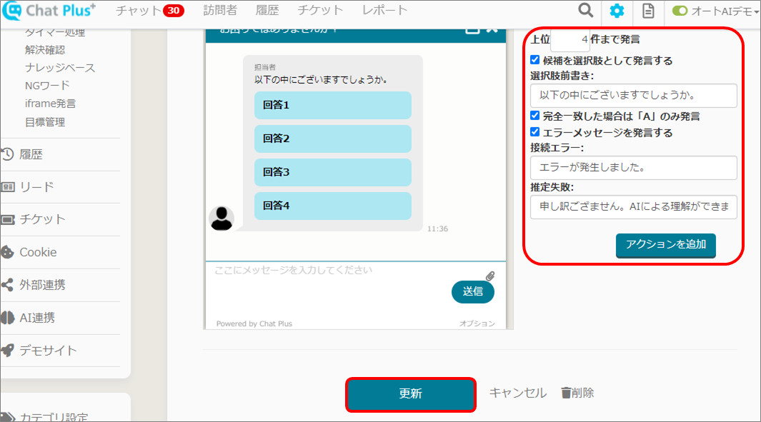 (7) 任意の設定を行い、「更新」ボタンをクリックします。