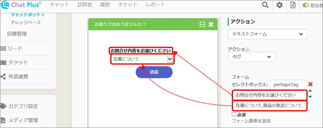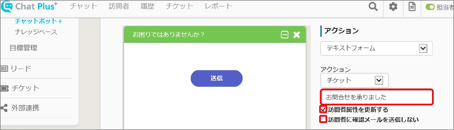 ※「テキストフォーム」横の枠は、お客様に送信されるメール(チケット)の本文に反映されます。