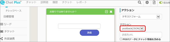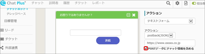 ※「POST データにチャット情報を含める」にチェックすると、送信データに現在のチャット情報が含まれます。