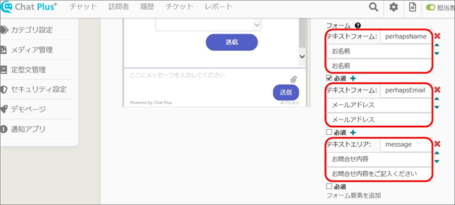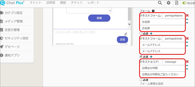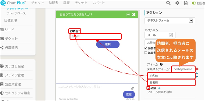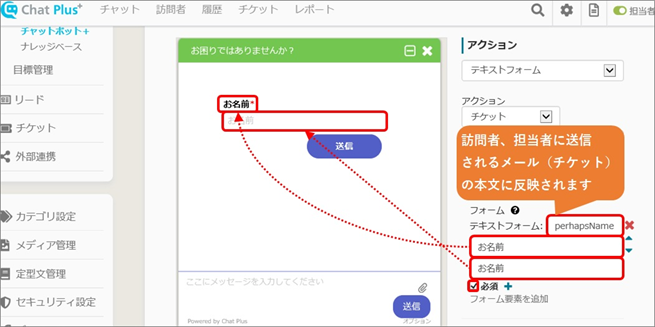 ※「テキストフォーム」横の枠は、お客様と担当者に送信されるメールの本文に反映されます。