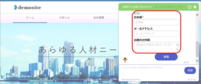 発言:フォームに入力した内容が、チャット履歴に反映されます。