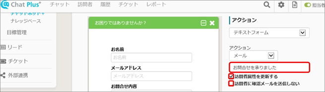 チケット:フォームに入力した内容で、チケットが作成されます。