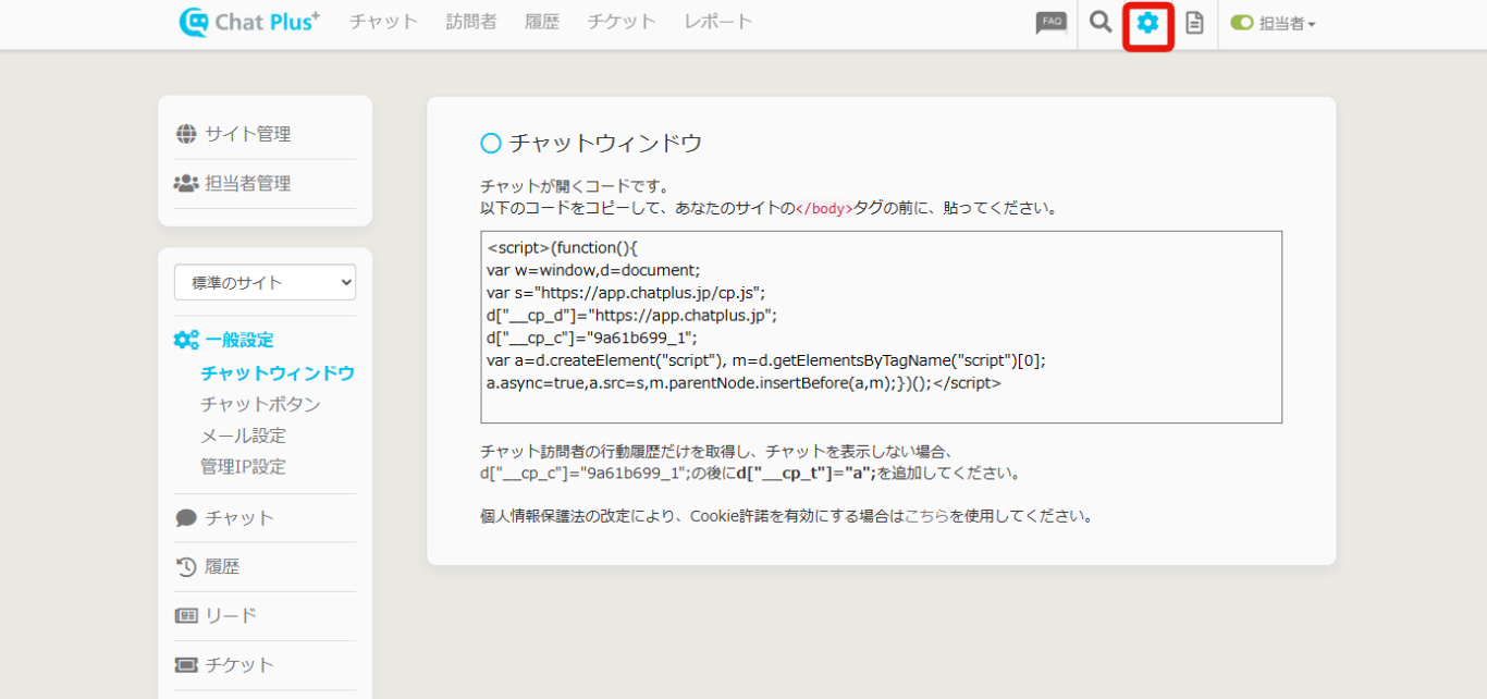 (1) 管理画面右上の歯車ボタンをクリックします。