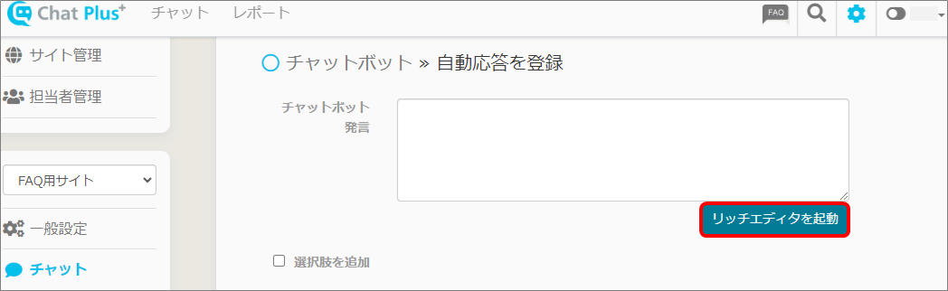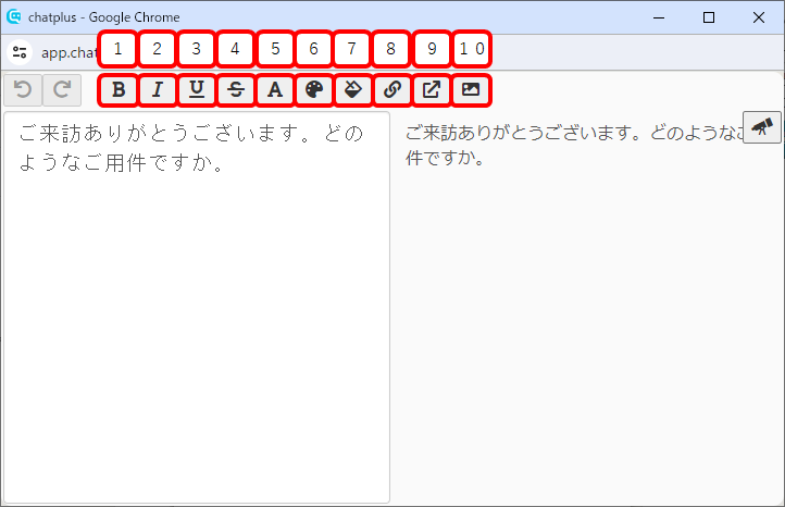 チャットプラスでは、装飾付きのテキストを入力できる、リッチエディタを使うことができます。