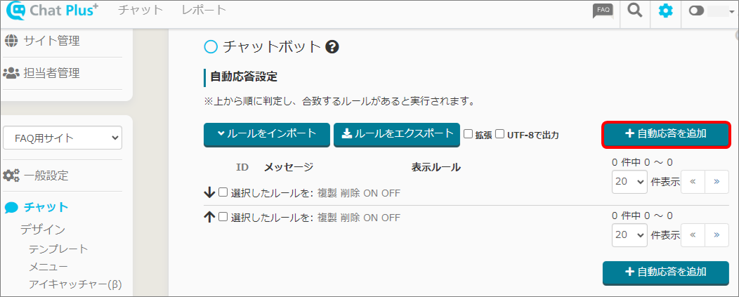 (3)「+自動応答を追加」ボタンをクリックします。
