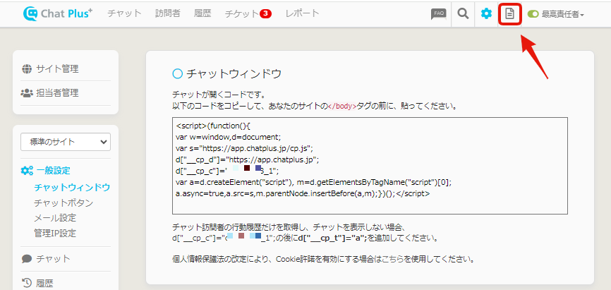 管理画面右上のノート(書類)マークより、契約画面にアクセスし、契約内容の確認や変更ができます。