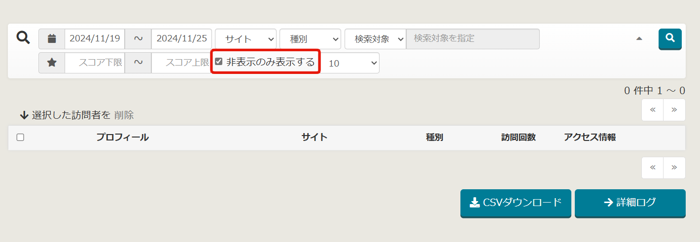 (3) 非表示に設定している訪問者の一覧が表示されます。お客様ご自身が登録されていないかご確認ください。